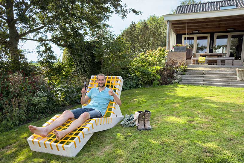 Tijd om te genieten van het mooie zomerweer. Dat kan prima op dit robuuste tuinbed van steigerhout. Comfortabel om op