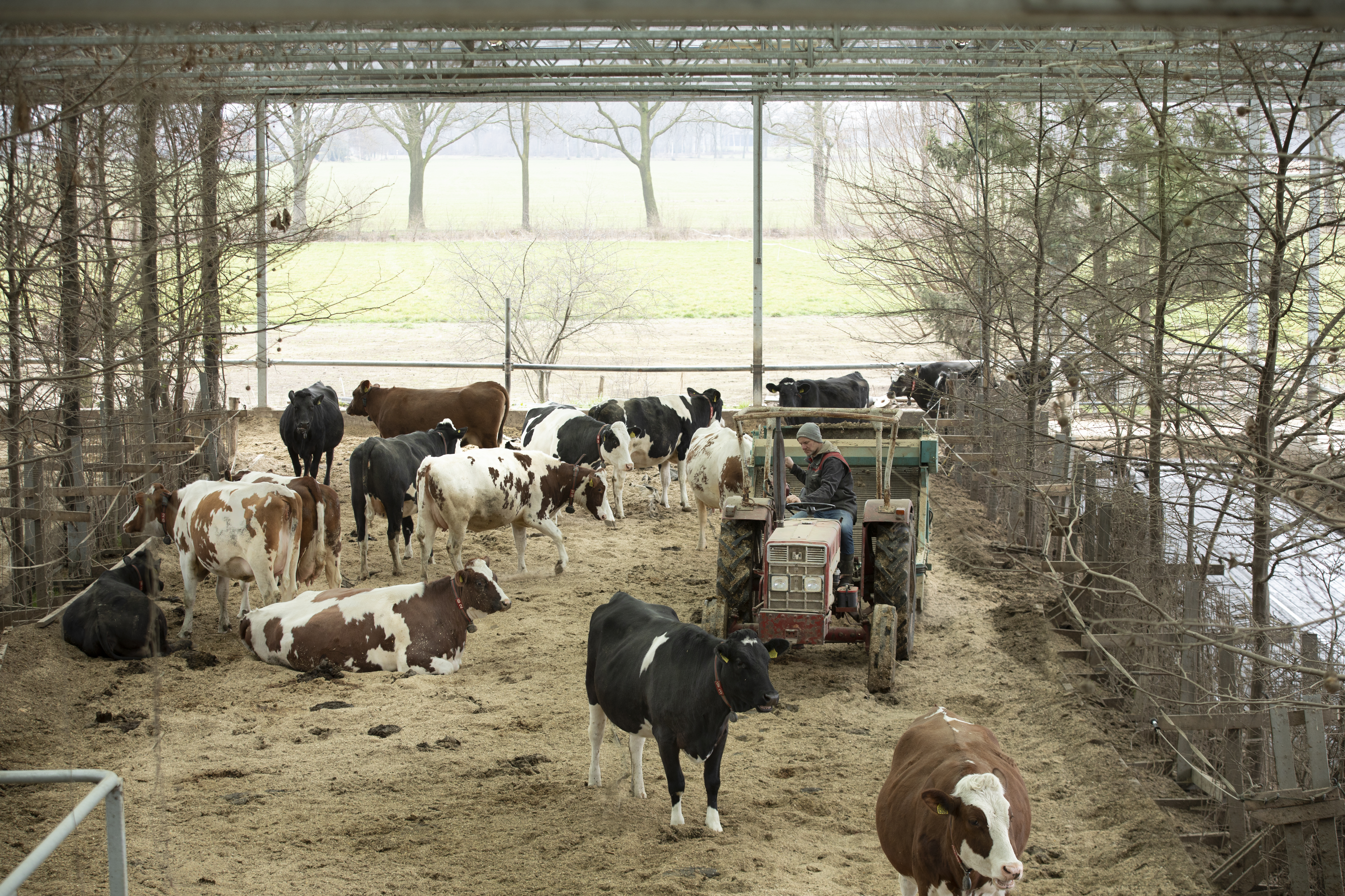 De koeien in mijn koeientuin kunnen zelf kiezen of ze naar binnen of buiten gaan. In de zomer kiezen ze er regelmatig voor om overdag binnen in de beschutting te blijven en gaan ze het liefst pas ’s avonds naar buiten. Hier telt de wens van de koe. Als ze naar buiten wil, graag. Blijft ze liever binnen, dan mag dat ook.” Daar staat ze dan tussen twee rijen in de stal groeiende bomen. “Een omgeving waar een koe zich prettig voelt.”