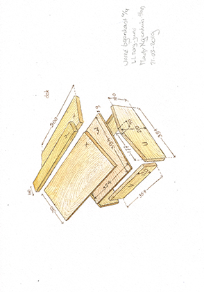 1. Voor de broedkamer heb je planken nodig van 210 mm breed en minimaal 20 mm dik. Deze maat is niet makkelijk verkrijgbaar; daarom gaan we ervan uit dat je de planken over de lengte moet verlijmen en op maat zagen.