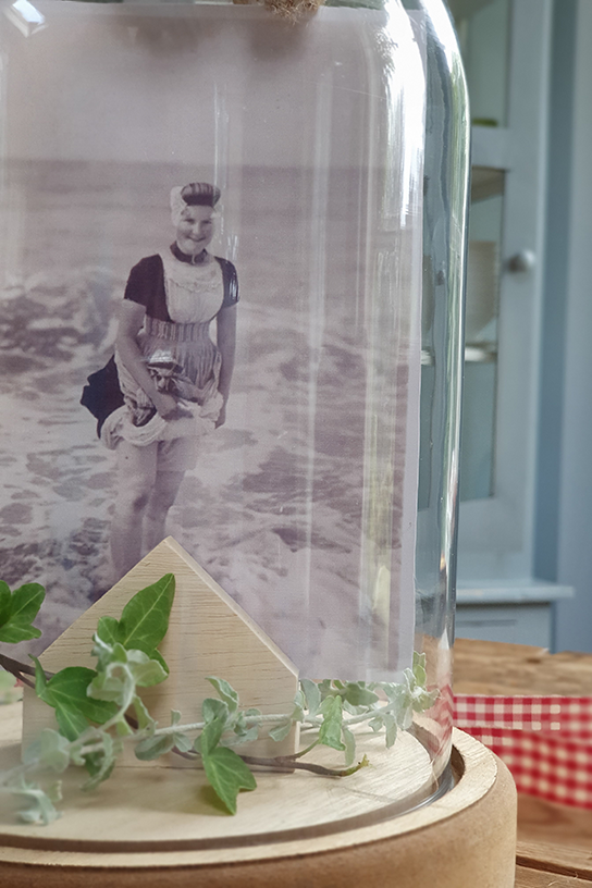 Die ene bijzondere foto verdient het om in het middelpunt van de belangstelling te staan. Plaats de foto in een stolp in een plaats van in een lijstje. Een klein takje hulst of klimop en een dennenappeltje zijn genoeg aankleding voor een tikkeltje kerstsfeer.