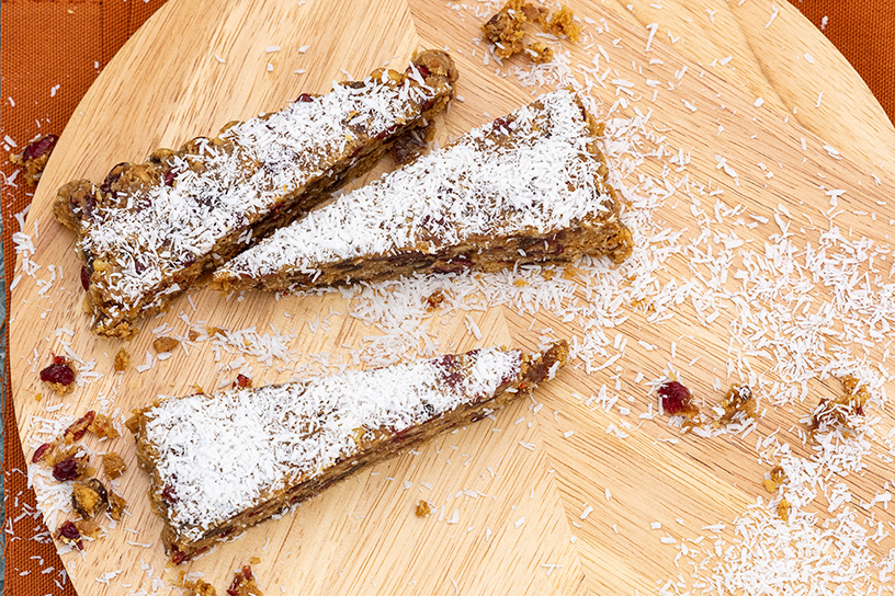 - Snijd de dadels in kleine stukjes en meng met de cranberry’s.