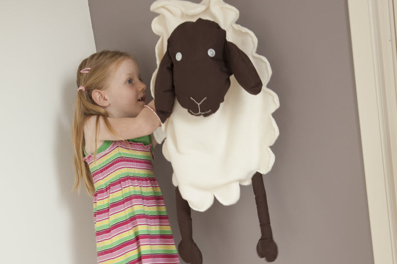 Met dit schaap aan de muur creëer je eenvoudig een eigen plek voor de buitenkleding van de jongsten in de familie. Bijzonder handig door het gebruik van elastiek, waar je met het grootste gemak losse sjaals, wanten en mutsen achter klemt. Leuk om zelf te maken, met hulp van je (klein)kind.