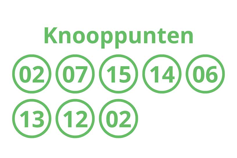 Knooppunten: 02, 07, 15, 14, 06, 13, 12 en 02.
