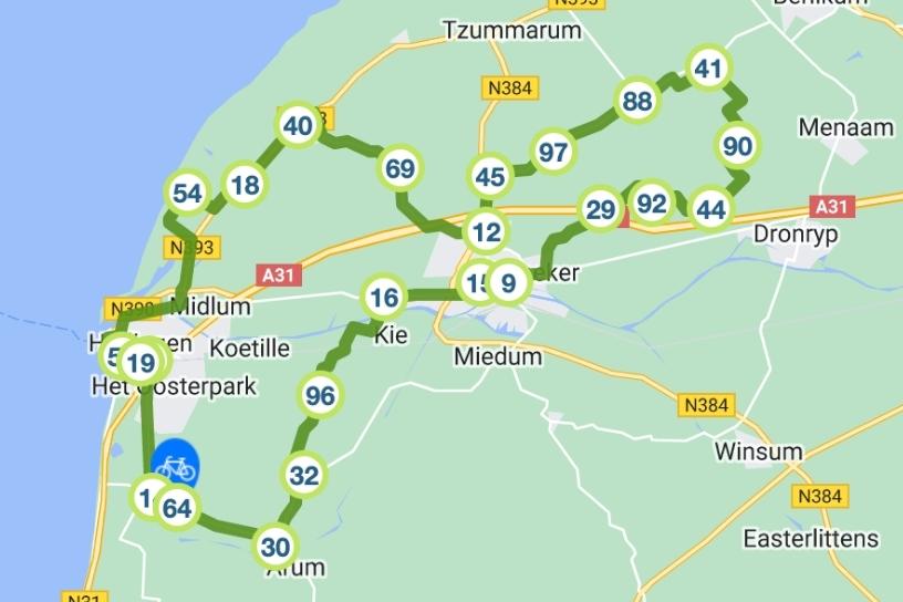 • De startlocatie van deze route is: Harlingerweg 2, 8821 LC Kimswerd.