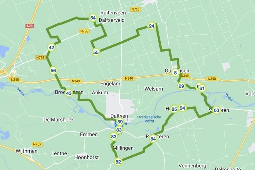 - De startlocatie van deze route is: Stationsweg 3, 7722 HA Dalfsen, Nederland.