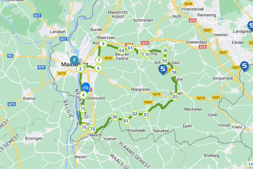- De startlocatie van deze route is is Köbbesweg 11, 6229 AC Maastricht, Nederland.
