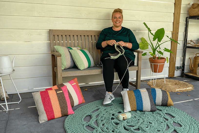 Deze prachtige kussenhoezen zijn ontworpen door Lisanne Multem van Happy Handmade Living. Zij blogt via Landleven.nl en op haar eigen creatieve blog www.happyhandmadeliving.nl, waar ze al haar liefde voor het zelf maken van accessoires deelt. Ze haakt en breit graag, maar ze geniet ook van veel andere zelfmaakprojecten. Haar tweede boek Happy Living is verschenen. Hierin deelt ze prachtige zelfmakers voor het hele jaar door.