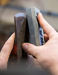 - Gebruik tot slot een wetsteen voor het afwetten van de bramen. Begin met een kleine hoek en maak deze vervolgens steeds groter.