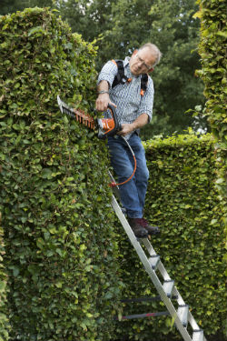 • Houd de haag zo smal mogelijk. Voor een brede haag is een langer mes nodig en daarmee een zwaardere snoeischaar. Dat maakt het werk zwaarder.
