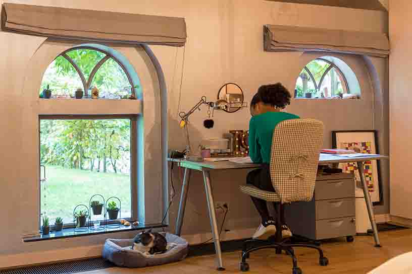 Door stalen kozijnen op dezelfde breedte als de halfronde stalraampjes te maken, wist Richard veel extra licht in huis te brengen, zoals hier op de slaapkamer van de oudste dochter Jade.