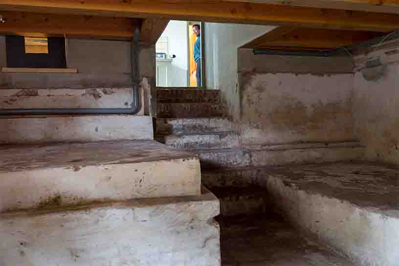 “De zus van de vorige eigenaar kwam langs en ze vroeg aan mij of ze even binnen mocht kijken, ze wilde graag zien hoe het huis er nu van binnen uitzag. Toen we in de pompstraat stonden, een gedeelte dat we nog niet hadden verbouwd, was ze ervan overtuigd dat er vroeger nóg een deur in de muur had gezeten. De deur naar de kelder.” Na enig speurwerk blijkt deze er inderdaad nog te zijn. Gloria en Richard worden nieuwsgierig en besluiten de weg naar de kelder weer vrij te maken. De kelder is gevuld met zand. Richard zet zijn schouders eronder en haalt de kelder leeg, waarna de volgende ontdekking tevoorschijn komt: “Helemaal achterin de kelder zat een oude put. Die heb ik heel voorzichtig uitgegraven.