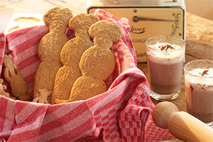 Voor vijf grote en tien kleine speculaaspoppen. Tip: Grotere poppen komen vaak makkelijker uit de vorm dan kleine. Maar pas op: als ze warm zijn, breken ze snel.