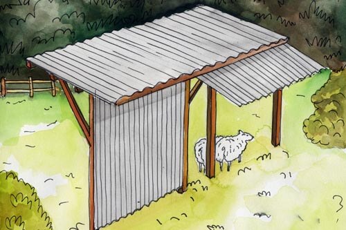 De schuilstal kan het beste worden geplaatst op het droogste stuk van het weiland en met de rug naar de regen- en windkant. Gemeenten die schuilstallen buiten het bouwblok toestaan, stellen vaak eisen aan materiaalgebruik. Om die reden zijn de delen van deze schuilstal geheel van hout. Op deze website staat veel informatie over de regel van schuilstallen.