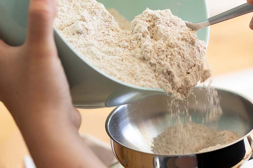 • Als u specerijen hebt gemalen is het aan te raden de stenen ‘schoon’ te maken door direct daarna een handjevol graan te malen. Gooi dit gearomatiseerde meel niet weg, maar gebruik het om een heerlijk kruidig brood te bakken!