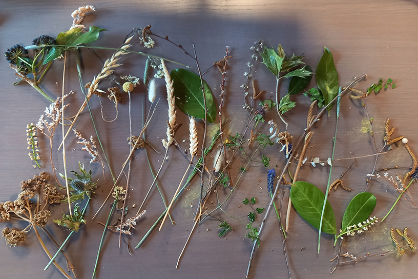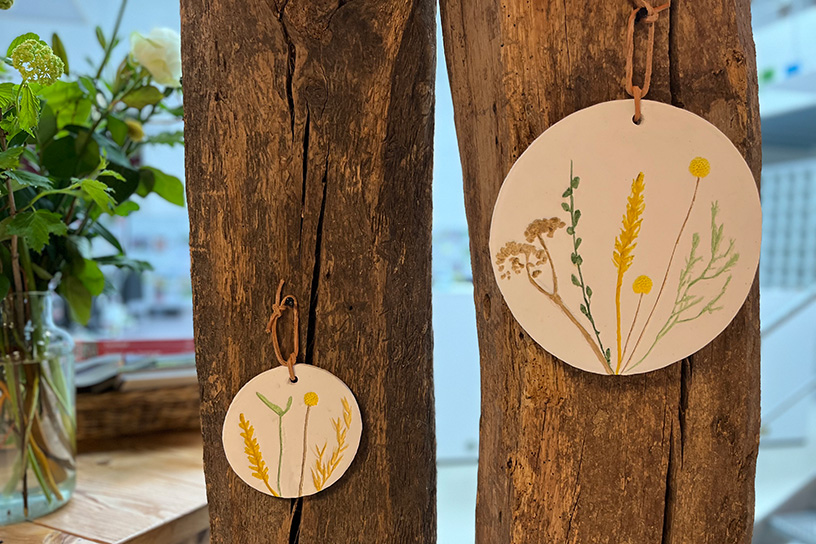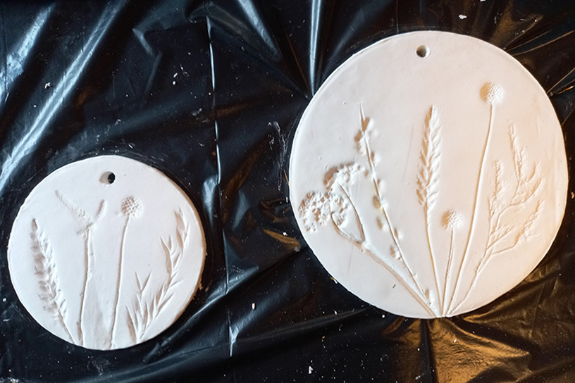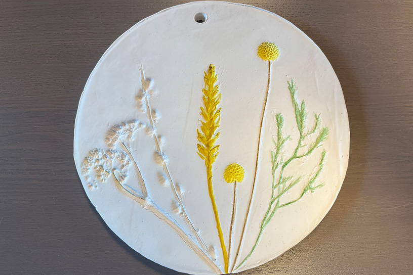 Duik de tuin in en pluk de mooiste bloemen om de afdrukken in de klei mee te kunnen maken. Het is handig om stevige bloemen te gebruiken zodat de bloemafdruk goed zichtbaar wordt en de verf op zijn plek blijft. Ook kun je gebruik maken van droogbloemen.