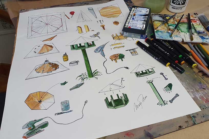 “Voor de vogels in mijn tuin heb ik een vogelvoederhuis gemaakt. Ik heb er een werktekening bij gemaakt voor wie