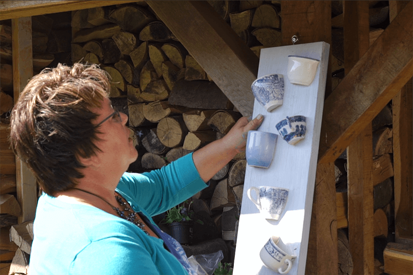 Geef oude kopjes en mokken die staan te verstoffen een nieuw doel. Halveer ze en vul ze met bloeiende planten.