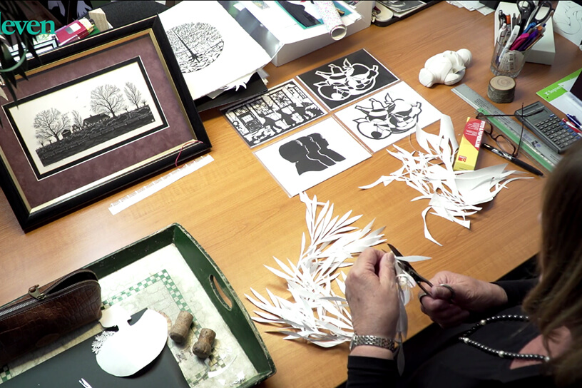 Zonder schetsen, zonder voorbeeld kan papierknipkunstenares Joke Kooi het Nederlandse landschap tevoorschijn toveren. “Desnoods uit een blauwe envelop.” In dit
