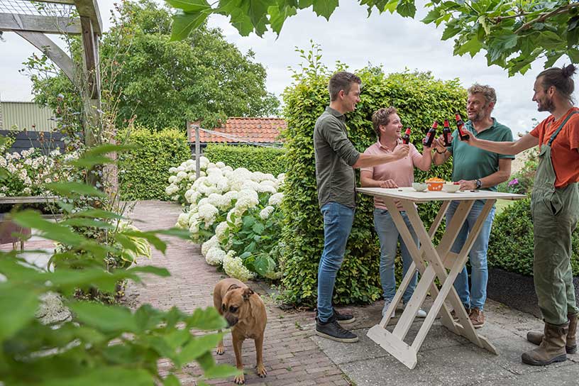 Vroeger stonden er fruitbomen, verschillend vee en lag er een moestuin rondom het oude schuurtje. Nu staan in de schuur