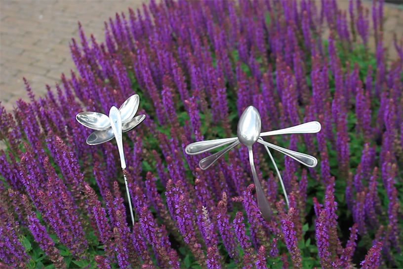 Deze tuinstekers in de vorm van een libelle maak je van wat oud bestek. Volg de stappen van Alie van