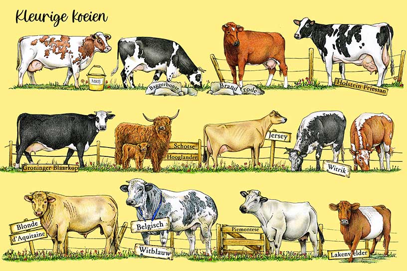 Oer-Hollandse koeienrassen: Groninger blaarkop, brandrode rund en lakenvelder