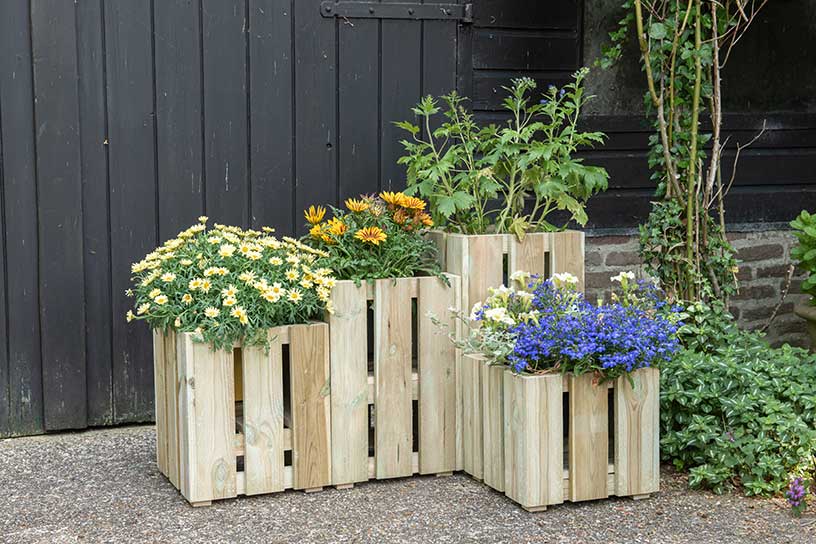 Fleur een leeg hoekje op het erf op met deze zelfgemaakte plantenbakken. De bakken vormen op het eerste gezicht één