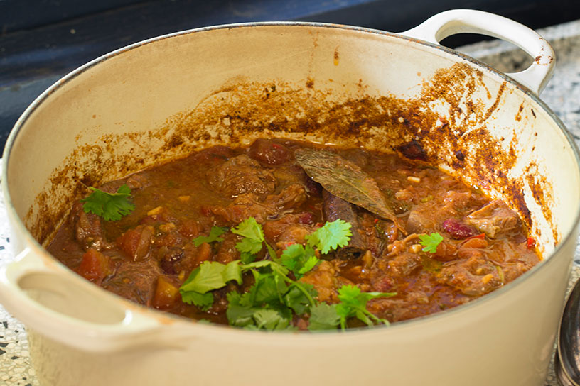 De botten van de schenkel geven extra veel smaak. Hoe langer je deze chili laat stoven, hoe lekkerder hij wordt!