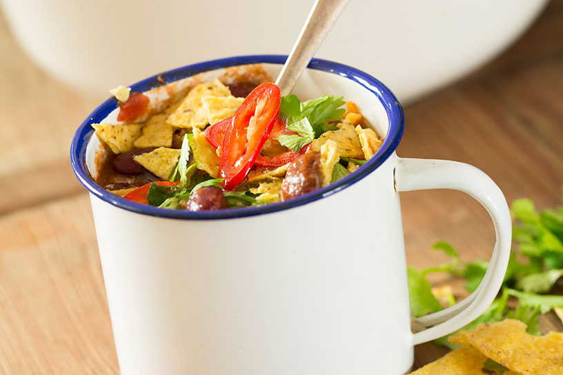 Dit gerecht is extra lekker met zelfgemaakte tomatensaus. Door de chocolade én door lekker lang te pruttelen krijgt de chili