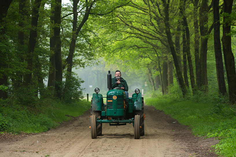 Jan van den Born uit Otterlo maakt voor de aardigheid een tochtje met de Bolinder-Munktell 230 Victor, een oude trekker