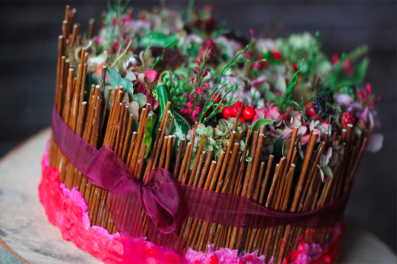 Een lust voor het oog is deze taart. Niet om op te eten, wel om van te genieten. Pluk op