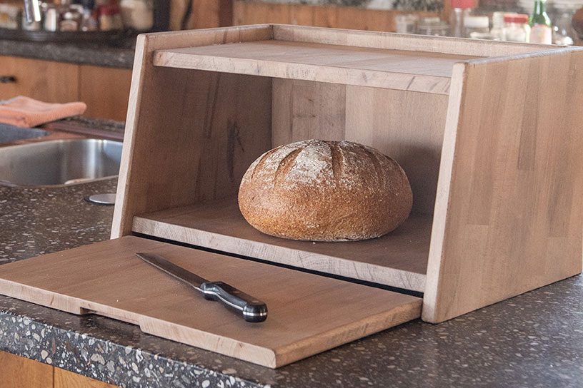 Zelfgebakken brood verdient een eigen plek om in bewaard te worden. Deze handige opberger, waarvan de binnenzijde van het deurtje