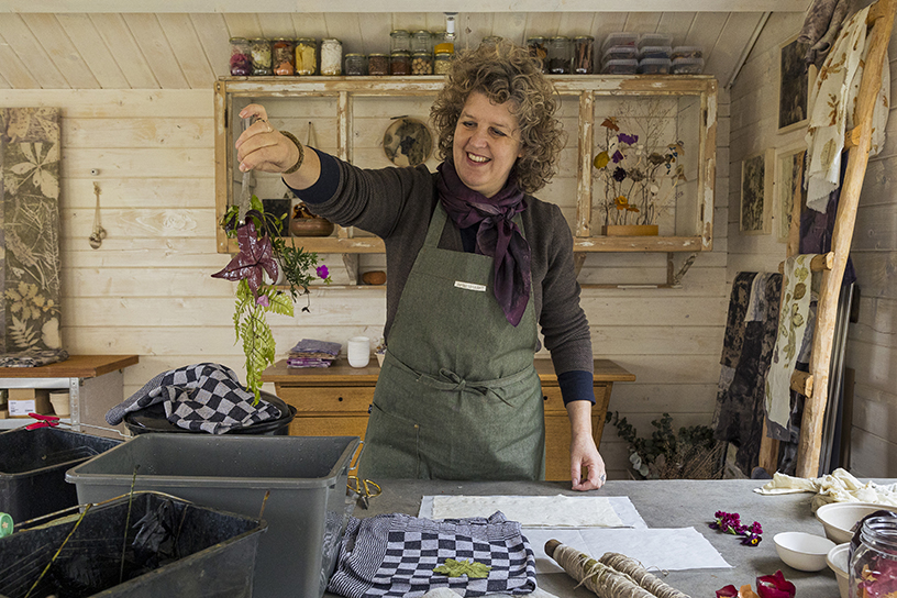 Van grote, stoere bladeren tot de fragielste bloemetjes: Amber van Vugt weet ze te vangen in haar ecoprints. Ze brengt