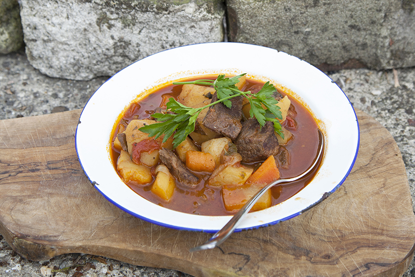 Een stoofpot gegaard boven een vuurtje is leuk om te maken en, ook niet onbelangrijk, erg lekker. Het rundvlees wordt