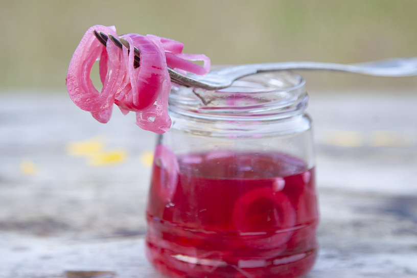 Deze rode uitjes in het zuur zijn niet alleen lekker in salades, maar ook op een broodje of een zelfgemaakte