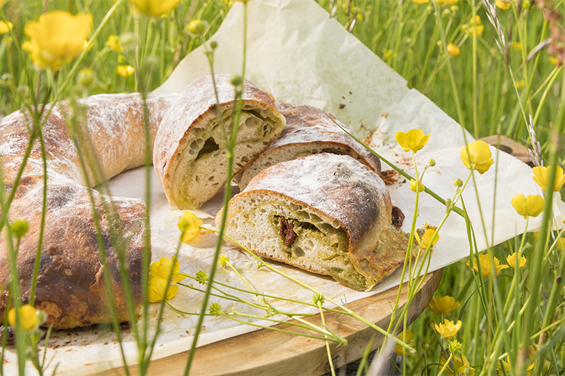 Een echte verrassing voor tijdens de picknick, een keer iets anders. Snijd dit brood pas tijdens de picknick in stukken;