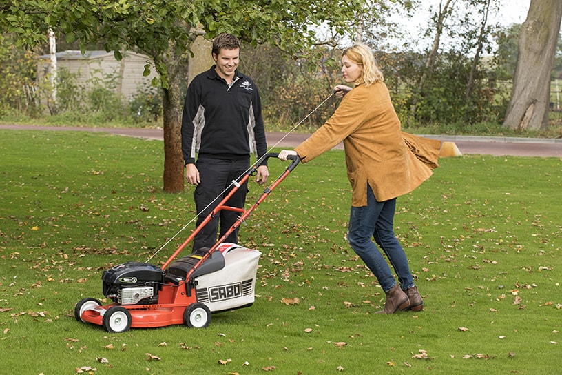 De grasmaaier kan in de winter de schuur in. Dit gaat natuurlijk niet zo makkelijk. Hoe maak je je maaier