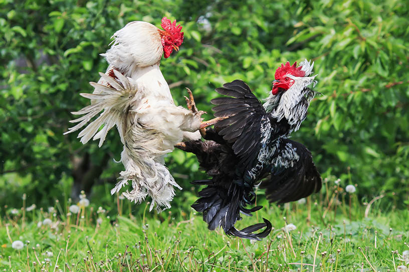 Hennen en hanen bepalen elk op hun eigen manier wie de baas is. Hanen pakken dit agressiever aan dan hennen.