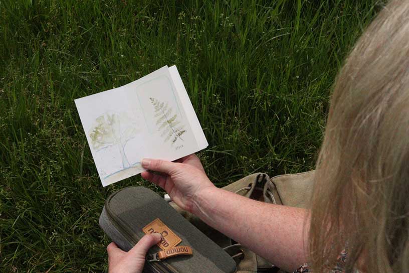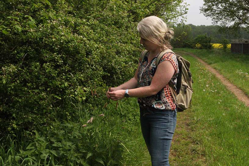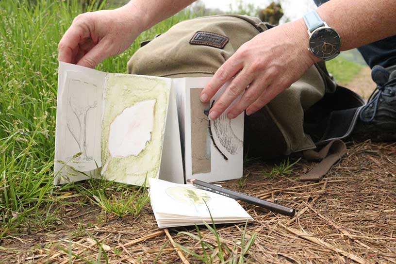 “Vroeger heb ik al kennis gemaakt met allerlei verschillende materialen. Zo mixte ik als kind tekenen en schilderen met stof, hout en wol.” Het is dan ook niet gek dat als Lisette gaat struinen ze allerlei spullen in haar rugzak heeft zitten. Maar wat betekent struinen? “Struinen betekent letterlijk ‘al rondzwervend kijken of je iets van je gading kunt vinden’. Tijdens struinen let Lisette niet alleen op wat ze ziet, ook ruikt en hoort ze wat er om haar heen te vinden is. Struinen is voor Lisette veel meer dan alleen de natuur in gaan, je kunt het ook toepassen in musea of kringloopwinkels. “Het liefst struin ik op rustige plekken, zoals een van mijn favorieten: de Amsterdamse Waterleidingduinen of de Veluwezoom.