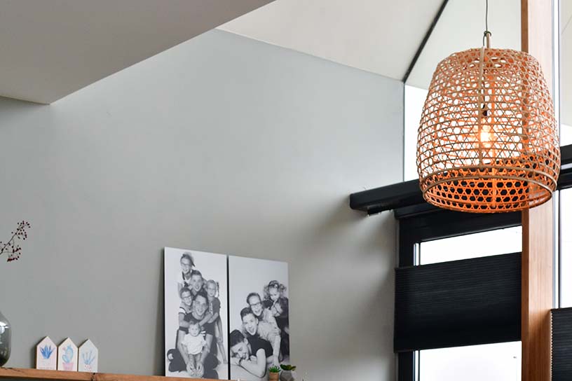 Toen we daar akkoord voor kregen, moesten we de oude kippenschuren slopen, de grond saneren, alles! In 2013 hebben we het perceel gekocht en in 2014 en 2015 hebben we het huis zelf gebouwd. Heel veel hebben we in de avonduren, de weekenden en de vakanties gedaan. Er stond nog een oude schuur die als kantoor dienst had gedaan, daar zijn we in gaan wonen. Rijk heeft er wat wanden ingezet en daar hebben we als gezin twee jaar gebivakkeerd. Dat kan ik iedereen aanraden die ook plannen heeft om zelf een huis te bouwen. Het is heel fijn om op de bouwplaats aanwezig te zijn, vooral in de afbouwfase. Als de kinderen ’s avonds op bed lagen, kon ik gewoon de babyfoon aanzetten en in het nieuwe huis gaan schilderen bijvoorbeeld. Op die manier kun je het bouwen en je gezinsleven goed combineren.”