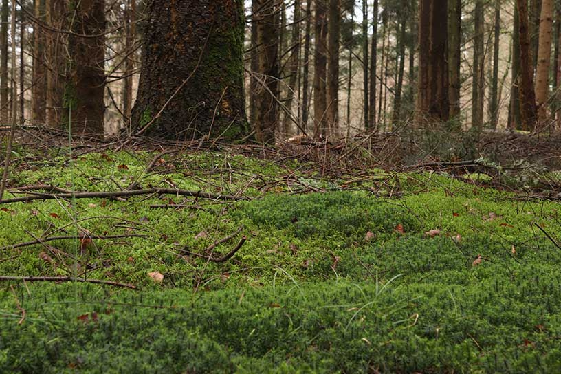 De handschoenen, muts, dikke jas en sjaal moeten vandaag zeker aan en om. Het is een koude dag, maar deze kou vergeet ik snel, want de route bevat een paar hoogte meters en waar de bomen het druilige weer bedekken is het qua temperatuur zeer aangenaam. Enkele keren merk ik weinig van deze kou. We zitten net een paar dagen in de maand maart, de ene dag brengt meer zonnestralen en vrolijke dieren met zich mee dan de andere. Daarom zegt men wel eens “Maart roert zijn staart”, en dat klopt zeker. De nacht hiervoor heeft het een beetje gesneeuwd. Deze sneeuw heeft zeker zijn kou nagelaten. De ijzel van de sneeuw ligt hier en daar tussen de bladeren verspreid. De stilte is goed merkbaar, als ik mijn neus ophaal hoor ik alleen mezelf. Door de gele paaltjes te volgen wandel je makkelijk deze route. Intieme bospaadjes met hoge bomen en mos zorgen voor een indrukwekkend gezicht. Ik ga op mijn hurken zitten en bekijk het mos van dichtbij. Door de tijd te nemen zie ik pas uit hoeveel plantjes het sprekende mos aanzicht bestaat. Door de kou staan deze plantjes stijf omhoog. Tijdens de route moet ik oppassen voor allerlei boomwortels, die zijn verspreid over de grond. Veel dieren of geluiden hoor of zie ik niet. Waarschijnlijk zijn ze lekker warm in hun nestjes gaan zitten.