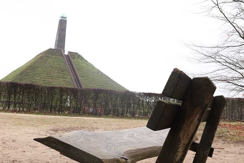 De route slaat linksaf. Doordat hier een beetje hoogte bij komt kijken doe ik mijn jas open en trek ik mijn sjaal van mijn nek. Van de kou merk ik nauwelijks meer iets. Tussen de bomen door zie ik een bouwsel verschijnen. Dit bouwstel staat wel erg hoog. Eenmaal dichterbij zie ik dat dit de obelisk van de Pyramide is. Hij zit verscholen achter het bos op een winderige open plek. De Pyramide van Austerlitz staat midden in de Utrechtse bossen bovenop het hoogste punt van de Utrechtse Heuvelrug. Dit monument stamt uit de tijd van Napoleon begin 1800. De obelisk die ik door de bomen zie was vroeger van hout, maar doordat hij in verval raakte is deze in 1894 van steen gebouwd. De route brengt me om de Pyramide heen en loopt richting de parkeerplaats naar beneden. Het is een wat koudere dag, maar het voelt warm aan! Deze route is mooi om te lopen met bijvoorbeeld (klein)kinderen en brengt ook nog een stukje Nederlandse geschiedenis met zich mee.