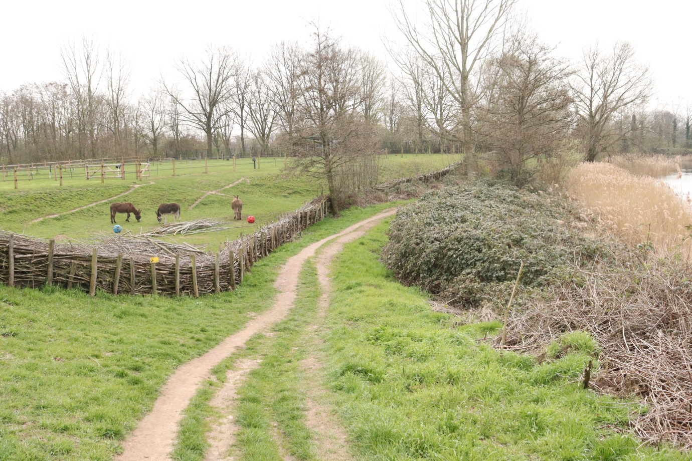 Voordat de route van de gezellige bospaadjes overloopt in een onverharde weg langs de plaatselijke voetbalclub staat hier een bijenstal. Deze bijenstal is van imkervereniging ‘De Bij en Wij’. Deze vereniging heeft beschikking over een bosperceel, authentieke bijenstal en een mooie waterpoel. In deze stal kunnen circa 24 volgroeide bijenvolken en ook 20 kleinere volken in ontwikkeling staan. Het water van de Nevelhorst kan ik tussen de bomen en struiken door zien, ik ben bijna terug. Het pad loopt over de Vincwijcweg naar benden, langs een huis met drie ezels. Het laarzenpad brengt me weer langs het water terug naar de parkeerplaats.