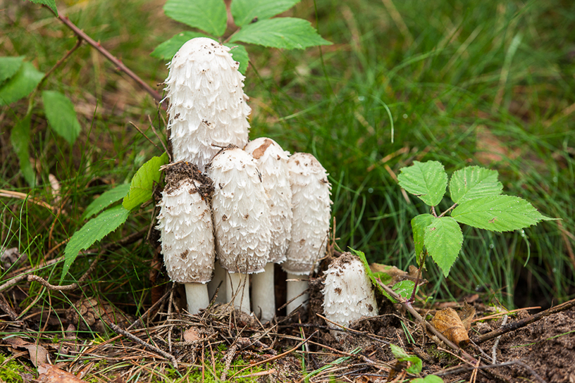 Dit is een paddenstoel die liever in het weiland dan in het bos staat. Je herkent hem aan zijn hoge hoed met rafeltjes. De geschubde inktzwam is in eerste instantie langgerekt en wit, maar kleurt later zwart en vervloeit uiteindelijk. De inktdruppels bevatten sporen waaruit nieuwe paddenstoelen kunnen ontstaan. Zolang deze inktzwam nog helemaal wit is, is hij eetbaar.