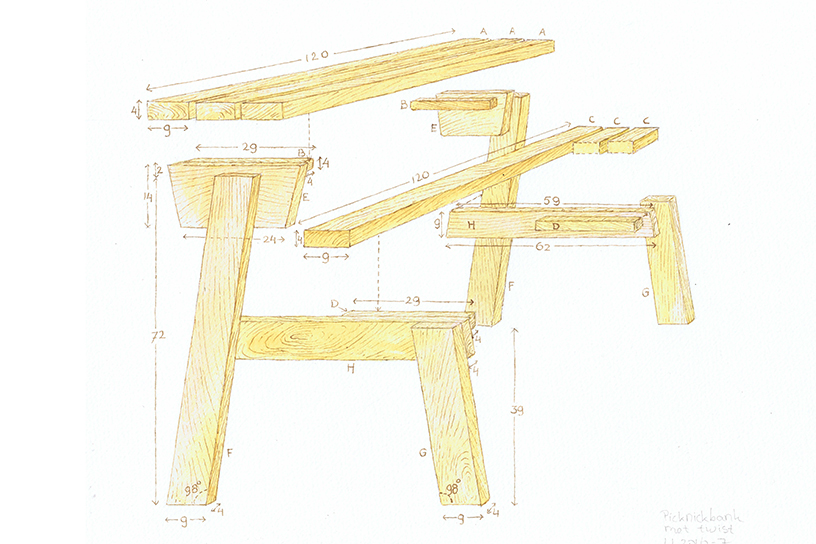Werktekening picknickbank