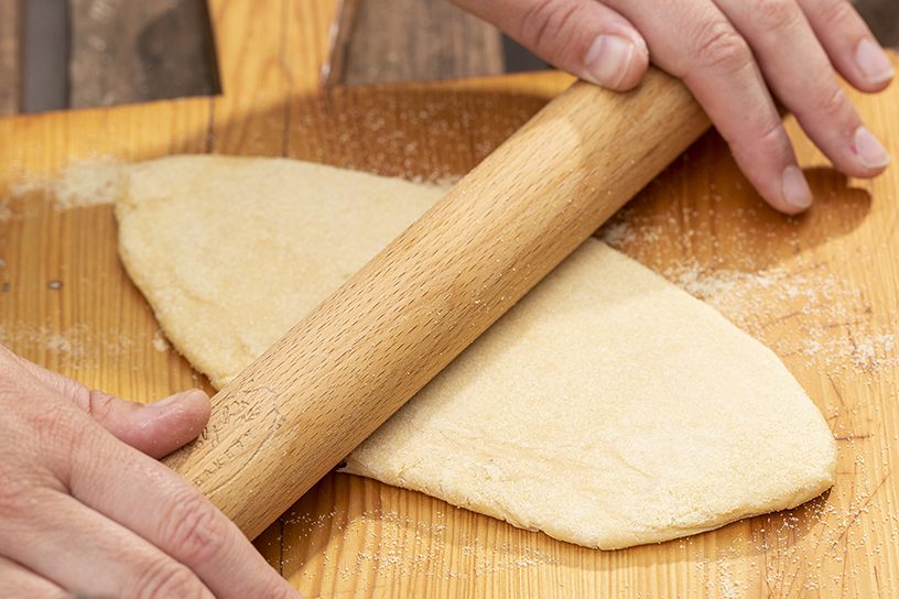 - Wordt het deeg te breed voor de machine? Snijd de lap dan wat smaller. Reststukjes kunt u weer uitrollen en opnieuw gebruiken.