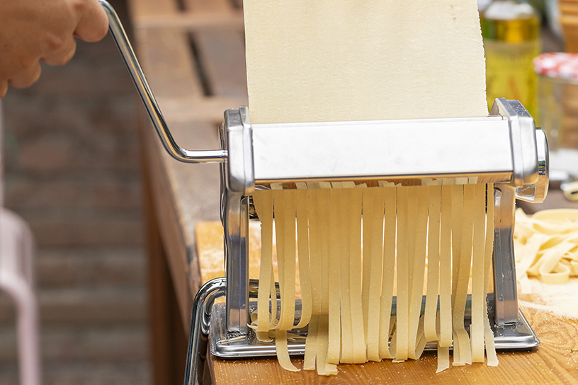 - Laat de verse pasta 24 uur drogen. Dat kan op een speciaal rekje, maar ook gewoon in hoopjes op een grote snijplank. Na een uur drogen kunt u de pasta al verder bereiden.
