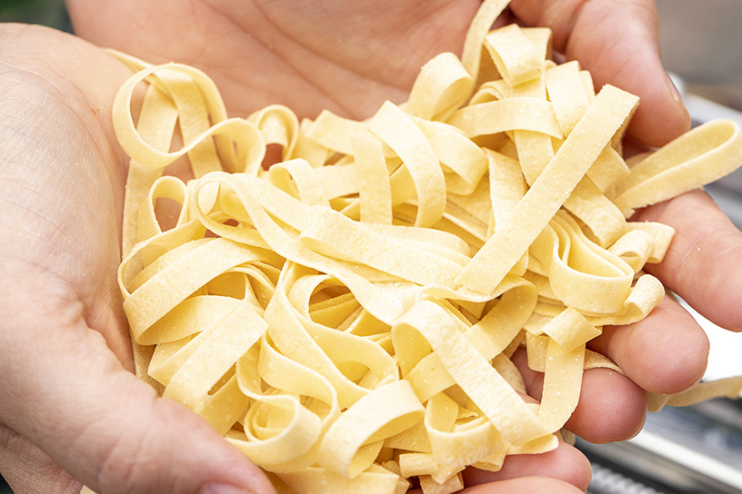 Zelf pasta maken is niet moeilijk, het kost alleen wat tijd en uitproberen. Het is leuk om te doen en het voordeel is dat u precies weet wat er in gaat. De eieren komen van uw eigen kippen en met meel van de molen maakt u er helemaal een eigen streekproduct van!