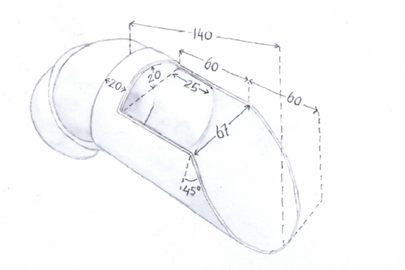 • Neem een stuk regenpijp met een doorsnede van 80 millimeter en een lengte van 14 centimeter. Zaag het aan één kant schuin af onder een hoek van 45 graden.